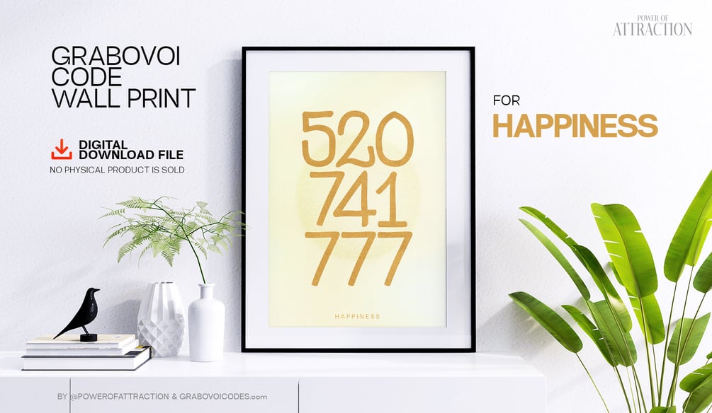 Fill your space with uplifting vibes and pure joy with this Happiness Manifestation Print featuring the 520 741 777 code. Designed to bring a sense of lightness and positivity into your daily life, this print is simple yet powerful to attract happiness, gratitude, and all the little moments that make life beautiful. Perfect for your home, workspace, or meditation corner!