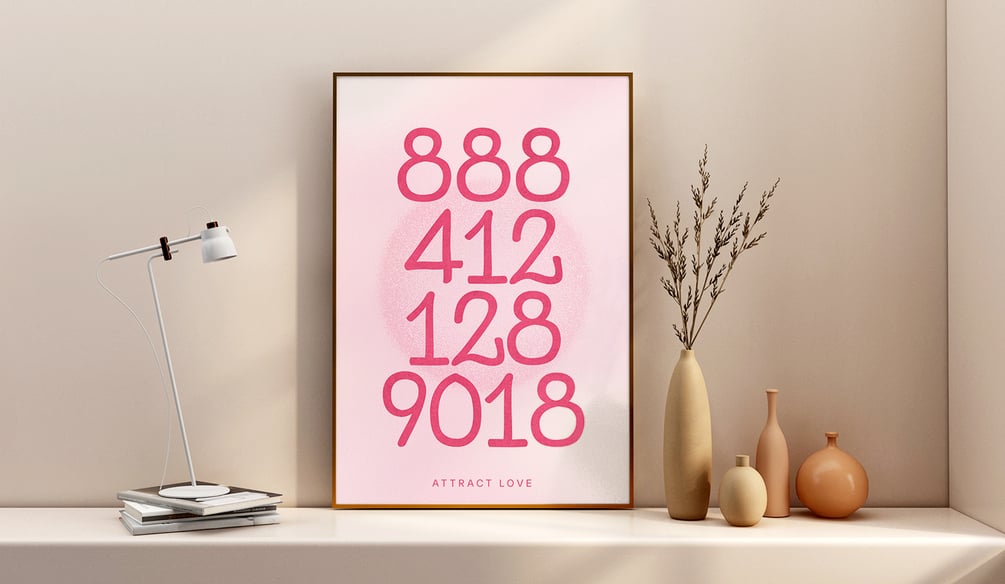 Love is the highest vibration, and this Love Manifestation Wall Print featuring the 888 412 128 9018 sequence is designed to attract deep connections, romance, and self-love. Whether you're calling in a soulmate, strengthening existing relationships, or simply embracing more love in your life, this minimalist design serves as a beautiful daily reminder to stay open-hearted.