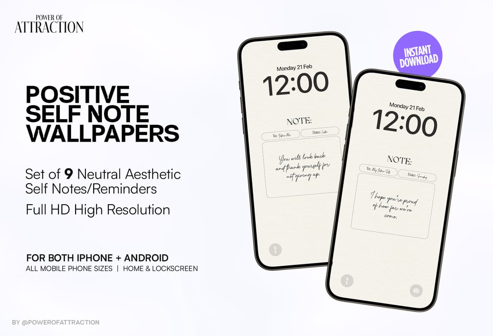 Stay inspired and organized with the Minimal Notes Wallpaper Pack, with a neutral, clean, and aesthetic style. These wallpapers blend functionality with a minimal design, helping you to stay aligned with your goals and reminding you of positive notes.